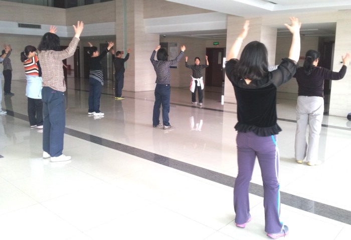 “大舞”集修身、养性、娱乐、观赏于一体,动作优美,衔接流畅,简单易学,安全可靠,适合于不同人群习练,具有祛病强身、延年益寿的功效。学校养生协会每周三中午12:30在主楼二楼大厅由体训部胡秀娟博士引领大家学习,欢迎颈椎不适的老师参加。